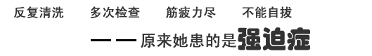 白某:女,31岁,近两年来逐渐出现怕脏,担心个人、家人外出时会传上什么病,而对衣物和手反复洗涤,症状逐渐加重,近三个月来,无论家人和她外出进家时,在门外要先换衣服,推内门时也要先洗手,要反复洗,甚至要洗几十遍,才可以用手接触室内物品,有时大冬天在外面手都洗破了,冻伤了。洗衣服更是一遍又一遍,有时一双袜子也要洗上两个小时,直到认为洗干净了心里才会踏实,有时还会担心门窗、水管、液化石油气开关是否关好,而反复检查,已经检查了几十遍,躺到床上仍不放心,还要继续检查验证,个人也知道关好了,这样重复检查也没意义,但就是控制不了,否则下面什么事也做不成,睡觉更谈不上,到综合医院去了,脑CT,脑电图检查均正常,脑系科大夫说让他到心理科看看,她得的是什么病呢?